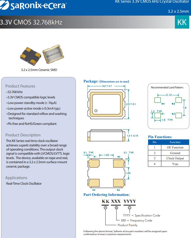 編碼KK3270049是一款超小型低損耗的有源晶振,石英晶體振蕩器,特性:32.768千赫,3.3V CMOS兼容邏輯電平,低功耗待機模式(< 10μA),低功率有功模式(<0.3mA典型),設(shè)計為標準回流和清洗技術(shù),無鉛,符合RoHS/綠色標準