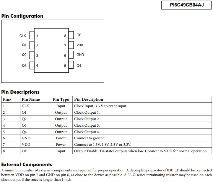 PI6C49CB04AJ是一款工業(yè)級低偏移1對4扇出緩沖器,PI6C49CB04AJWEX,有源晶振,ECERA晶振