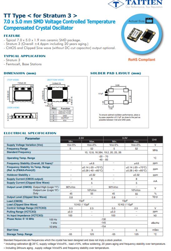 | TSETTLJANF-20.000000 | Taitien | TS | TCXO | 20MHz | 2.8 V ~ 3.3 V |