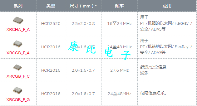 | XRCPB30M000F0Z00R0 | HCR2016 | 30.0000MHz | ±100ppm max. (25±3℃) | 工業(yè)級 |