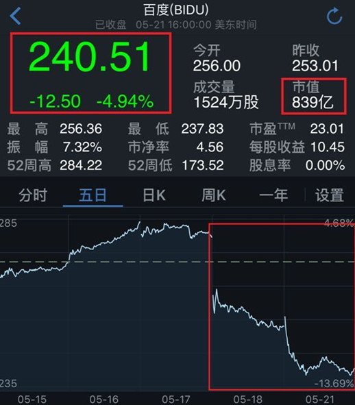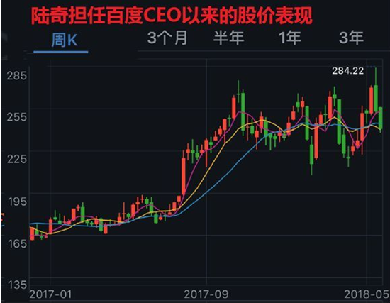 陸奇,百度集團總裁兼首席運營官,畢業于復旦大學,獲計算機科學學士、碩士學位。曾就讀于卡耐基梅隆大學,獲計算機科學博士學位。他除了在學術界發表過一系列高質量的研究論文,還持有40多項美國專利。 短短兩個交易日,百度的股價從279.68元,下跌到了240.51元,跌幅超過了14%。