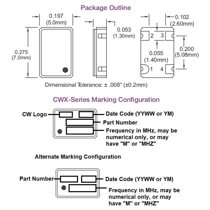 CWX813-080.0M,ConnorWinfield無鉛環(huán)保晶振,7050mm有源晶振,無線應(yīng)用晶振,尺寸圖