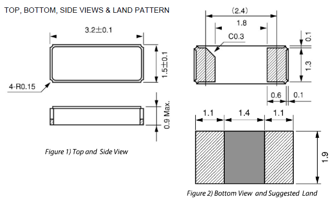 ECS伊西斯ECX-31B時鐘晶振,ECS-.327-7-34B-TR石英晶體,ECS-.327-7-34B-C-TR,32.768K晶振,尺寸圖