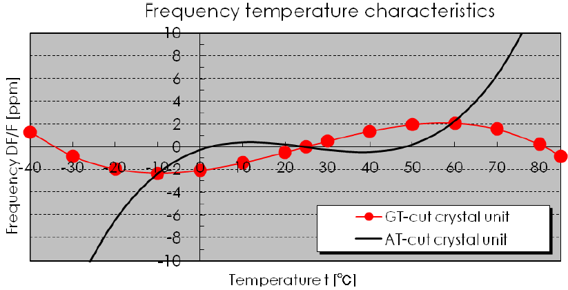 更多>>日本大河晶振提供了較好的頻率溫度GT切割石英晶振的特性