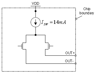 HCSL驅動器選項僅在某些SiTime差分晶振系列中可用.HCSL輸出結構(見圖1和圖3)由14毫安開關電流源驅動,通常通過50Ω電阻接地.如圖2所示,標稱信號擺幅為700毫伏.輸出端的開漏晶體管在幾千歐姆范圍內具有相當高的阻抗.從交流角度來看,輸出晶體管阻抗與50Ω負載電阻并聯,導致等效電阻非常接近50ω.由于該接口中使用的走線具有50Ω的特性阻抗,負載反射的任何信號都將在源端被吸收.通常,兩個小電阻R1和R2(見圖2)與高阻抗驅動器串聯放置.它們通過減緩輸出電流的快速上升起到過沖限制器的作用,對源阻抗匹配沒有影響.SiTime推薦這些電阻使用33Ω電阻.