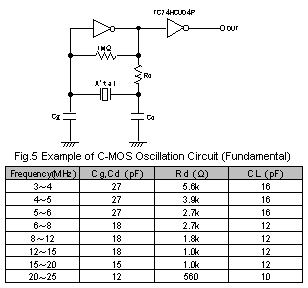(8)當用于C-MOS振蕩電路時,電路圖中的Rd是必不可少的(見圖2).如果該Rd達到,則驅動電平保持在規定值內,并且可以獲得穩定的振蕩頻率. (10)Cg和Cd應在10~30pF的范圍內使用,如果Cg和Cd的使用低于10pF或高于20pF,則有源晶振振蕩可能很容易受到電路性能的影響,驅動電平可能會增加,或者負電阻可能會降低,因此未能保持穩定的振蕩.