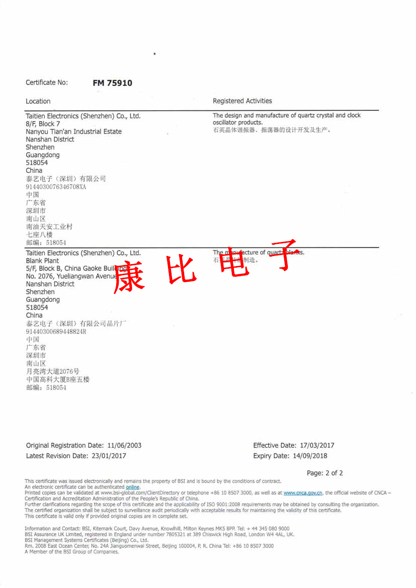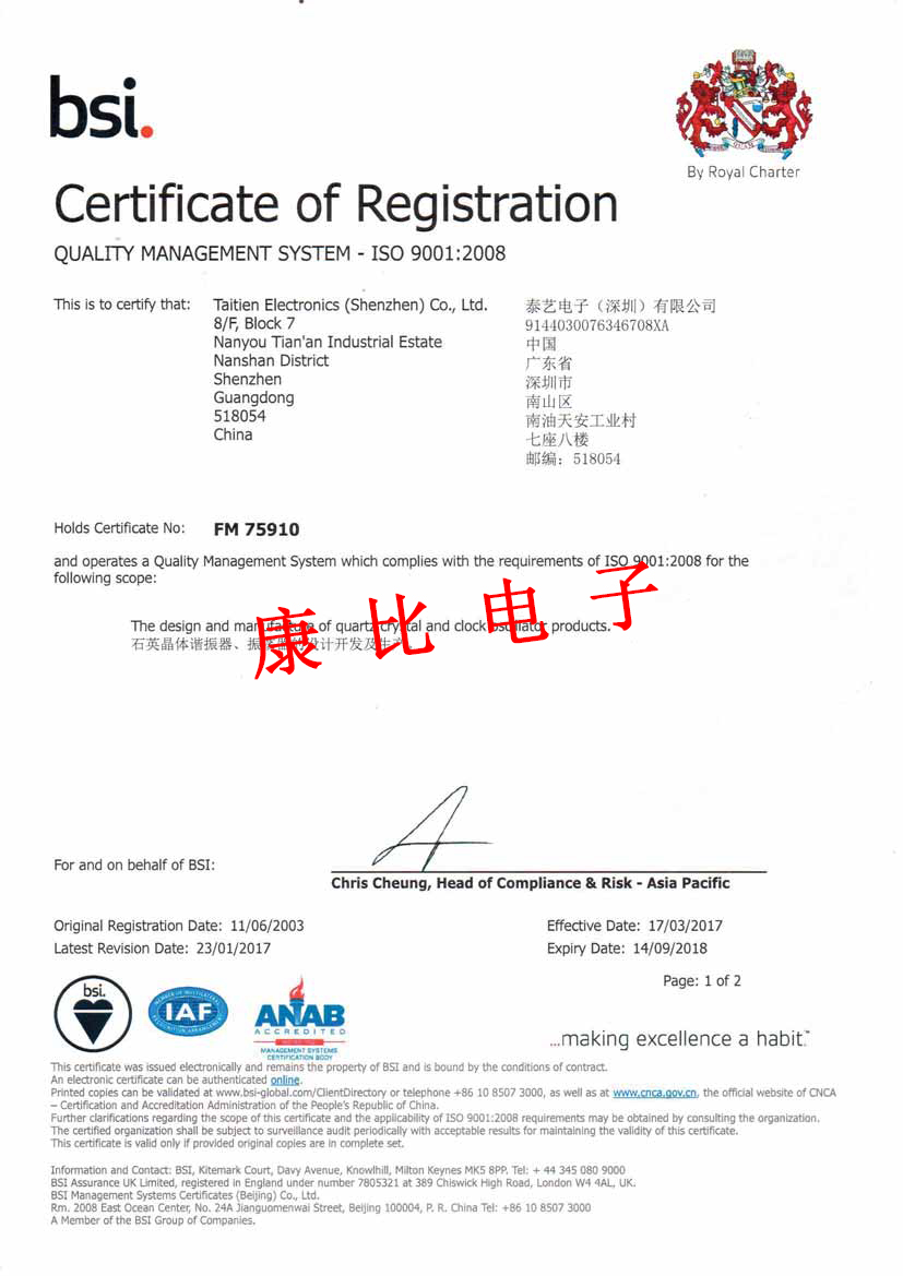更多>>泰藝電子ISO9001:2008質量管理認證