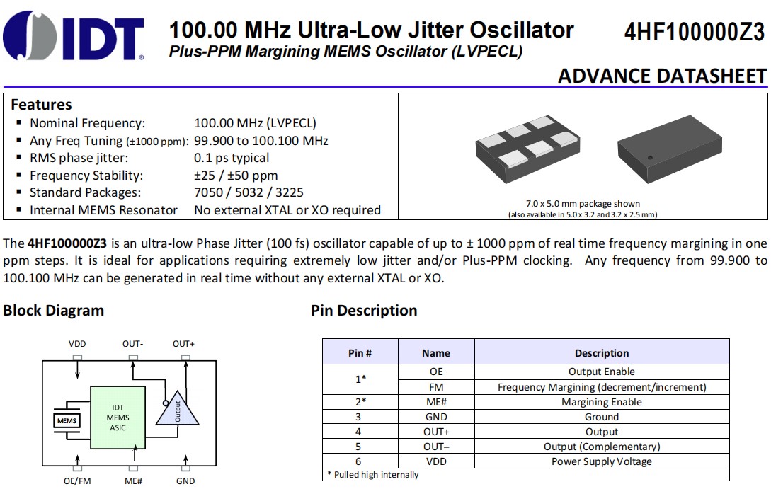 | 4HF050000Z3AACXGI | IDT晶振 | OSC MEMS 50.000MHZ LVPECL SMD | 4HF | 50MHz |