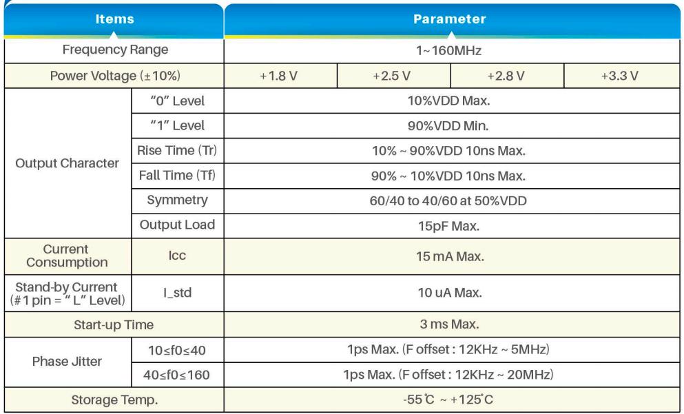 有源晶振產品特性