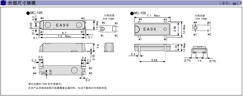 晶振MC-146,32.768KHZ晶體,無線通訊晶振因32.768KHZ晶體本身外觀款式多元化,“MC-146 32.7680KA-A”所以適合多個產品應用.并且滿足歐盟ROHS環保要求,晶體本身有重量輕,體積小,超薄型等多種優勢,得到市場認可.