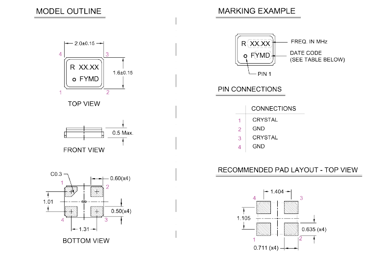 | 頻率溫度特征 | f_tem | ±30 × 10-6/-20°C ~ +70°C | 超出標準的規格請聯系我們. |