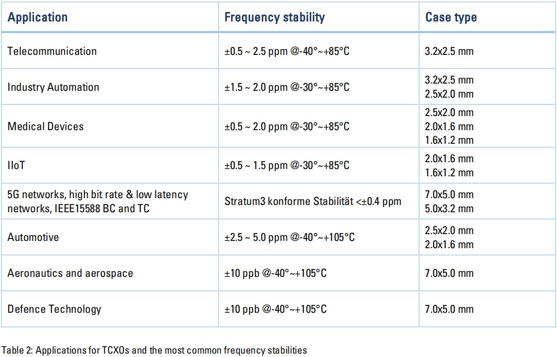 消費(fèi)部門、自動化部門以及越來越多的醫(yī)療技術(shù)部門正在轉(zhuǎn)向更常見的tcxo,其中小型化和更好的頻率行為的趨勢是明顯的。