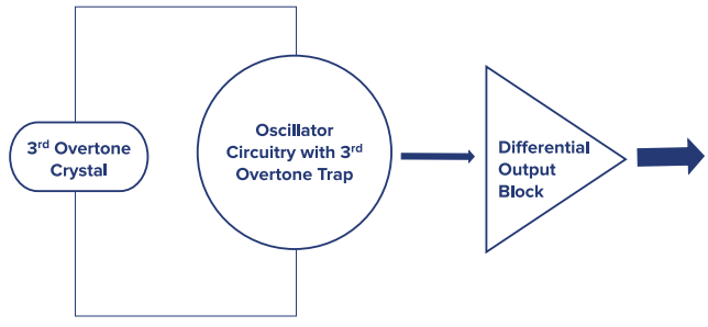AX3性能的秘密在于它的簡(jiǎn)單性.仔細(xì)設(shè)計(jì)第三泛音晶體毛坯,并適當(dāng)捕獲所需載波信號(hào),確保目標(biāo)載波具有出色的均方根抖動(dòng)性能.如圖2所示,AX3架構(gòu)不采用典型的鎖相環(huán)方法,因此沒(méi)有"上變頻"簡(jiǎn)單地說(shuō),所產(chǎn)生的信號(hào)沒(méi)有分?jǐn)?shù)或整數(shù)乘法,因此,最終輸出頻率與第三泛音石英晶體的諧振頻率具有一對(duì)一的相關(guān)性.不采用小數(shù)乘法簡(jiǎn)化了設(shè)計(jì),并在3.2x2.5x1.0mm小型封裝中提供了最佳抖動(dòng).
