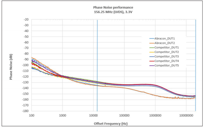 不是我 認(rèn)為,競(jìng)爭(zhēng)對(duì)手的解決方案基于倒置臺(tái)面晶體技術(shù),不采用AX3家族的第三泛音晶體架構(gòu).此外,競(jìng)爭(zhēng)對(duì)手設(shè)備內(nèi)部的有源電路顯示出偏離載波10千赫至1千赫之間的大約-135分貝/赫的閾值.這一限制有助于降低目標(biāo)帶寬(12千赫至20兆赫)上的均方根抖動(dòng)性能.