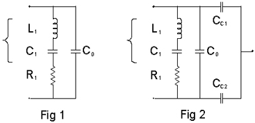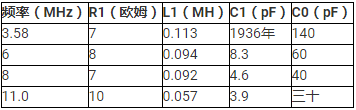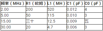 表示石英晶振阻抗的RLC電路由圖1中的兩端等效物表示。