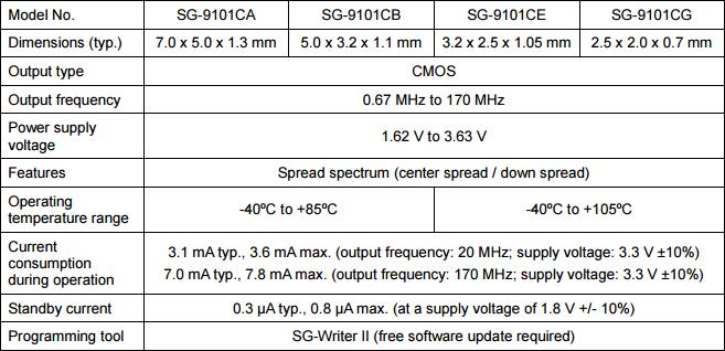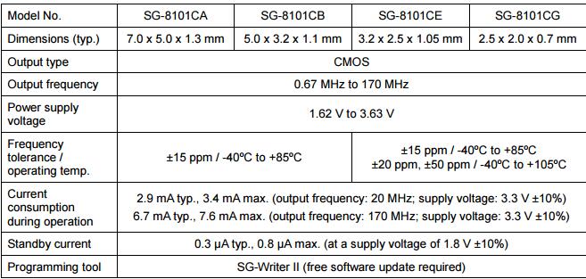 雖然兩系列提供了易于編程的頻率和其他參數一樣早些時候可比愛普生產品(SG- 8002 & SG- 8003系列的SG- 8101和SG- 9001 SG- 9101)的情況下,他們也有一個更廣泛的操作溫度范圍,與高端限制為105℃.除了2.5毫米x 2.0毫米包,使電子產品制造商節省空間,可用的石英晶體振蕩器也將在以下流行的包裝尺寸:3.2毫米x 2.5毫米,5.0毫米x 3.2毫米,7.0毫米x 5.0毫米.