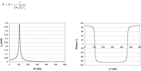 圖9顯示了幅度和相位與石英晶振周圍頻率的響應。共振頻率由下式給出: