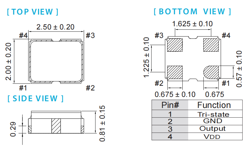 CMOS,OYKIDLJANF-0.032768,32.768KHz,2520mm,Taitien振蕩器,高品質晶振,汽車導航晶振,尺寸圖