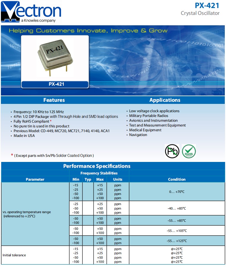 Vectron維管晶振,PX-4210-DAB-FKAB-10M0000000,導(dǎo)航儀6G應(yīng)用,參數(shù)表