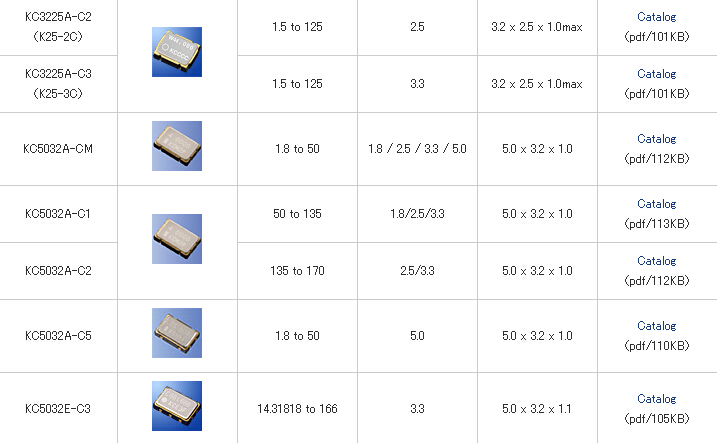 KC5032A-CM-C1-C2-C5振蕩器,KC5032E-C3晶體,京瓷貼片晶振5032mm體積的石英晶體振蕩器有源晶振,改產品可驅動2.5V的溫補晶振,壓控晶振,VC-TCXO晶體振蕩器產品,電源電壓的低電耗型,編帶包裝方式,可對應自動高速貼片機自動焊接,及IR回流焊接(無鉛對應),為無鉛產品,超小型,質地輕.產品被廣泛應用到集成電路,程控交換系統,無線發射基站.