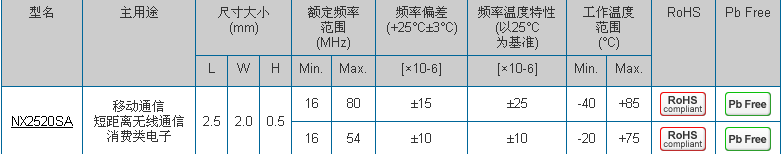 晶振NX2520SA,進口貼片晶振,汽車導航晶振2520mm體積的晶振,可以說是目前小型數碼產品的福音,目前超小型的智能手機里面所應用的就是小型的石英晶振,該產品最適用于無線通訊系統,無線局域網,已實現低相位噪聲,低電壓,低消費電流和高穩定度,超小型,質量輕等產品特點,產品本身編帶包裝方式,可對應自動高速貼片機應用,以及高溫回流焊接(產品無鉛對應),為無鉛產品.