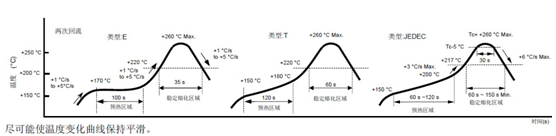 (2)SMD產(chǎn)品回流焊接條件圖用于JEDEC J-STD-020D.01回流條件的耐熱可用性需個(gè)別判斷.請(qǐng)聯(lián)系我們以便獲取相關(guān)信息.